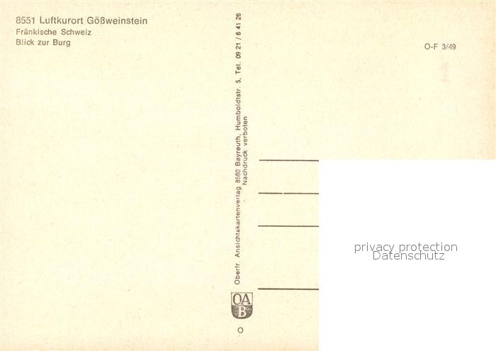73226014 Goessweinstein mit Burg postalisch nicht gelaufen Erhaltung siehe scans [LiesaD40] KatCode: 11110009474129