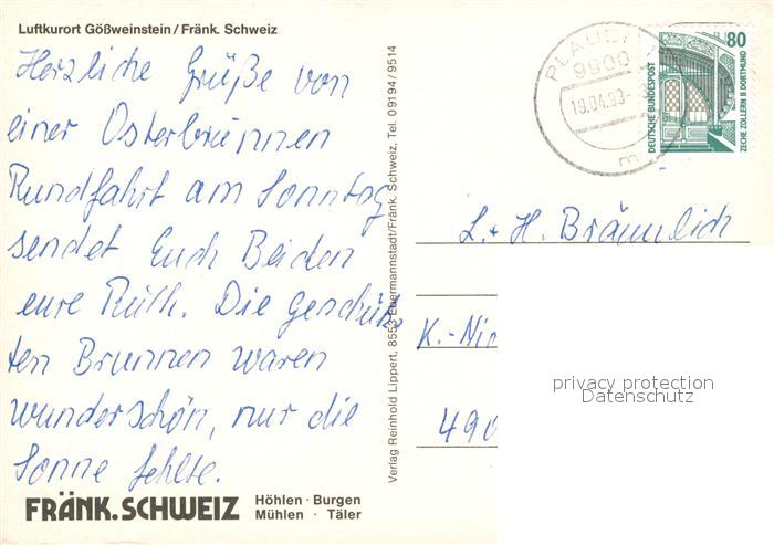 73223779 alte Postkarte Goessweinstein mit Kirche postalisch gelaufen Erhaltung siehe scans [LiesaD40] KatCode: 11110009474129