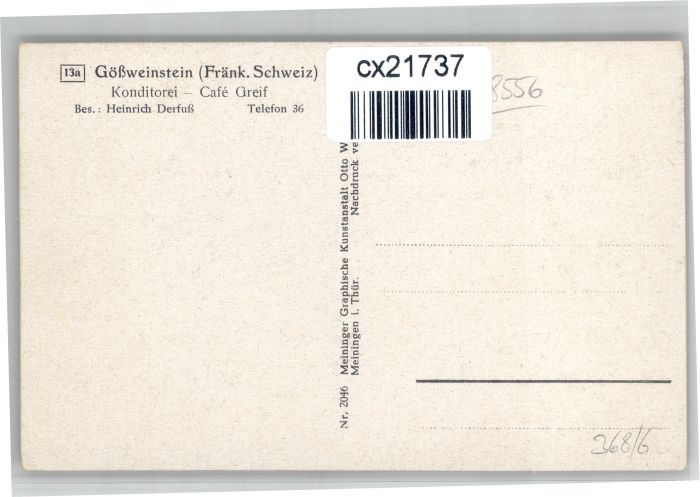 30739747 Goessweinstein onditorei Greif postalisch nicht gelaufen KatCode: 11110009474129