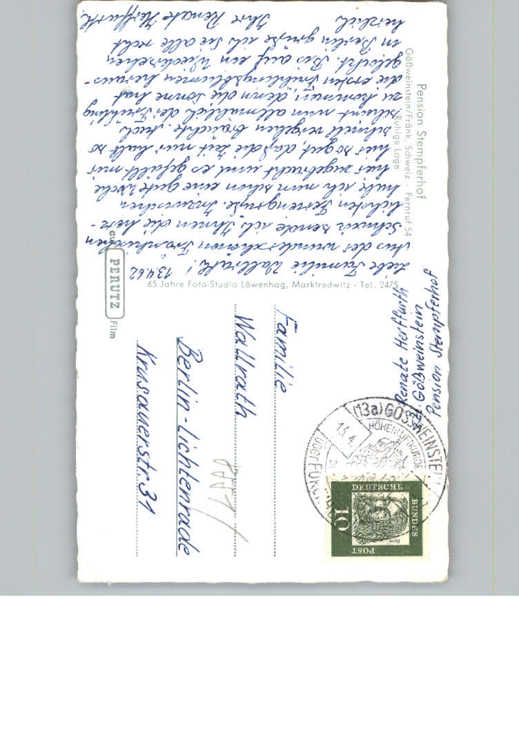 31162446 Goessweinstein Pension Stempferhof postalisch nicht gelaufen KatCode: 11110009474129