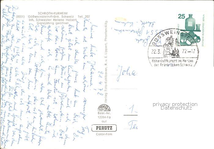 72154638 alte Postkarte Goessweinstein Schroth Kurheim postalisch gelaufen Erhaltung siehe scans KatCode: 11110009474129