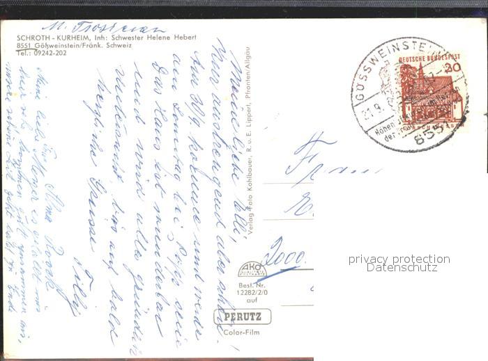 71832937 alte Postkarte Goessweinstein Schroth-Kurheim postalisch gelaufen Erhaltung siehe scans KatCode: 11110009474129
