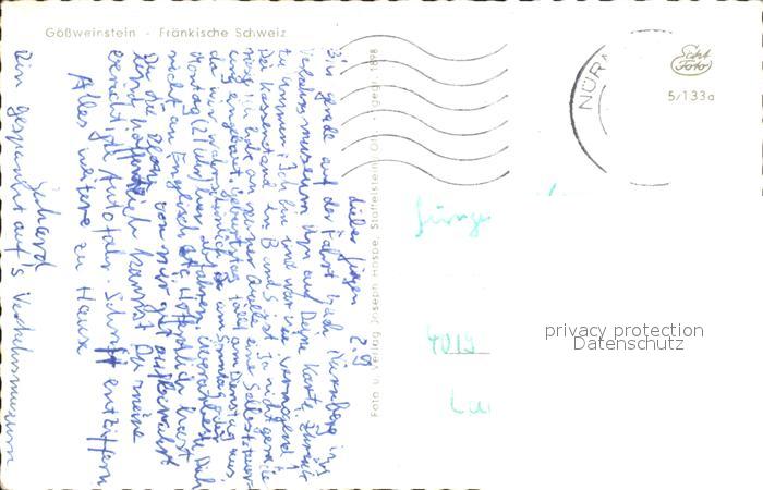 72197700 alte Postkarte Goessweinstein Stadt postalisch gelaufen Erhaltung siehe scans KatCode: 11110009474129