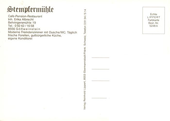 73932178 Goessweinstein Stempfermuehle postalisch nicht gelaufen Erhaltung siehe scans [WerneD78] KatCode: 11110009474129