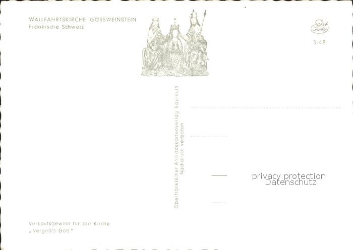 72204396 Goessweinstein Wallfahrtskirche postalisch nicht gelaufen Erhaltung siehe scans KatCode: 11110009474129
