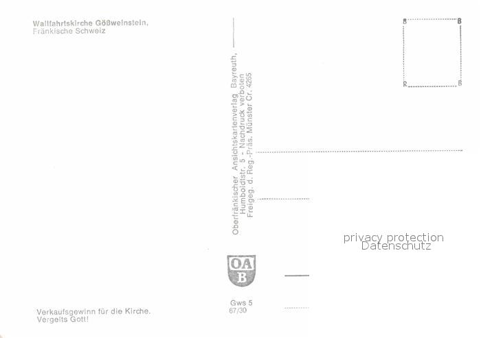 72791609 Goessweinstein Wallfahrtskirche postalisch nicht gelaufen Erhaltung siehe scans [AndreD76] KatCode: 11110009474129