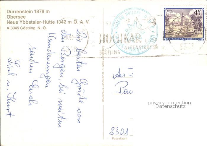 72496461 alte Postkarte Goestling Ybbs Duerrenstein Obersee Ybbstaler Huette Gipfelkreuz postalisch gelaufen Erhaltung siehe scans KatCode: 11390121032002