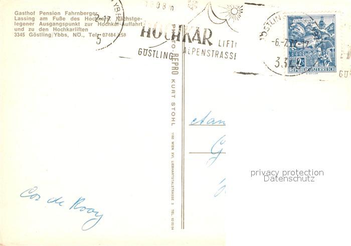 72940453 alte Postkarte Goestling Ybbs Gasthof-Pension Fahrnberger postalisch gelaufen Erhaltung siehe scans [PaolaD17] KatCode: 11390121032002