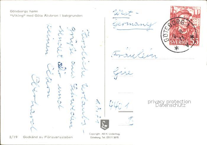 old postcard Goeteborg Goeteborgs hamn Viking med Goeta aelvbron i bakgrunden postalisch gelaufen Erhaltung siehe scans