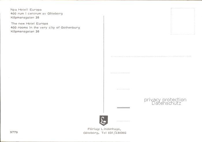 Goeteborg Hotell Europa postalisch nicht gelaufen Erhaltung siehe scans [LiesaD40]