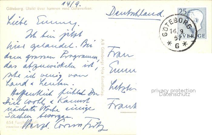 old postcard Goeteborg utsikt over hammen med Goetaverken postalisch gelaufen Erhaltung siehe scans