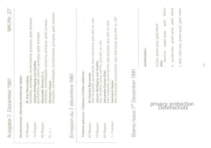 74017319 GOETHE Johann Wolfgang von Dichter Briefmarke Fuerstentum Lichtenstein postalisch nicht gelaufen Erhaltung siehe scans [IrynaD87] KatCode: 22400000000100