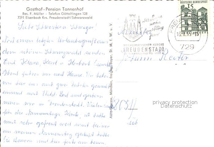 41593883 Goettelfingen Seewald Schwarzwald Gasthof-Pension Tannenhof in Eisenbach postalisch gelaufen Erhaltung siehe scans Alte Ansichtskarte Postkarte alte Postkarte Bert Katcode 11110008237073