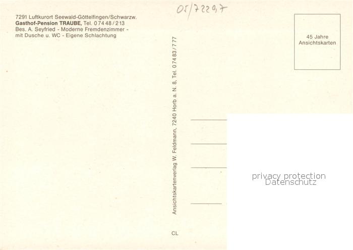 73734169 Goettelfingen Seewald Schwarzwald Gasthof Pension Traube Nagoldtalsperre Luftbild postalisch nicht gelaufen Erhaltung siehe scans [FriedD77] KatCode: 11110008237073