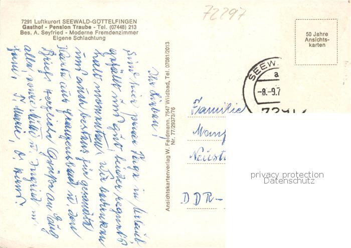 73867755 alte Postkarte Goettelfingen Seewald Schwarzwald Gasthof Pension Traube See Luftaufnahme postalisch gelaufen Erhaltung siehe scans [FriedD77] KatCode: 11110008237073