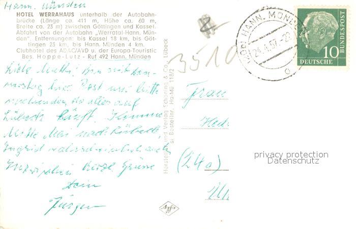 73714123 alte Postkarte Goettingen Herberhausen Hotel Werrahaus unterhalb der Autobahnbruecke postalisch gelaufen Erhaltung siehe scans [WerneD78] KatCode: 11110003152012