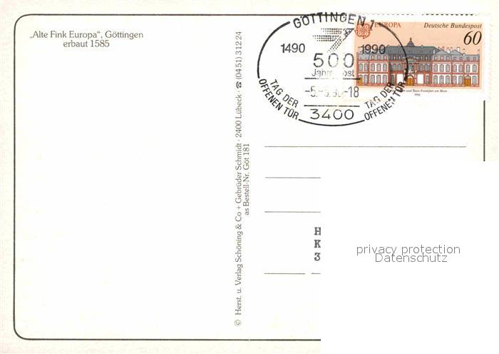 72679744 alte Postkarte Goettingen Niedersachsen Alte Fink Europa Gasthaus postalisch gelaufen Erhaltung siehe scans [FriedD77] KatCode: 11110003152012
