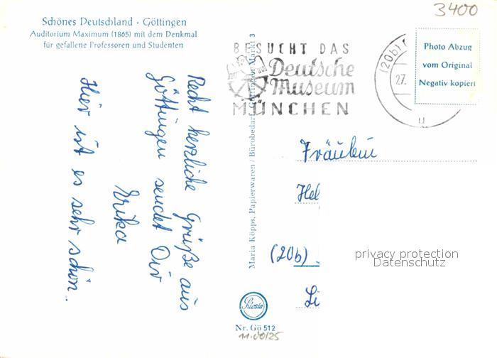 72893384 alte Postkarte Goettingen Niedersachsen Auditorium Maximum Denkmal postalisch gelaufen Erhaltung siehe scans [PaolaD17] KatCode: 11110003152012