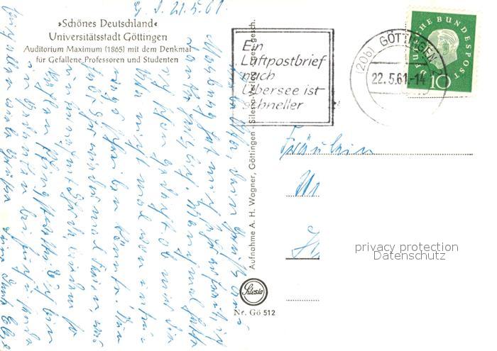 73145026 alte Postkarte Goettingen Niedersachsen Auditorium Maximum Denkmal Universitaetsstadt Serie Schoenes Deutschland postalisch gelaufen Erhaltung siehe scans [FriedD77] KatCode: 11110003152012