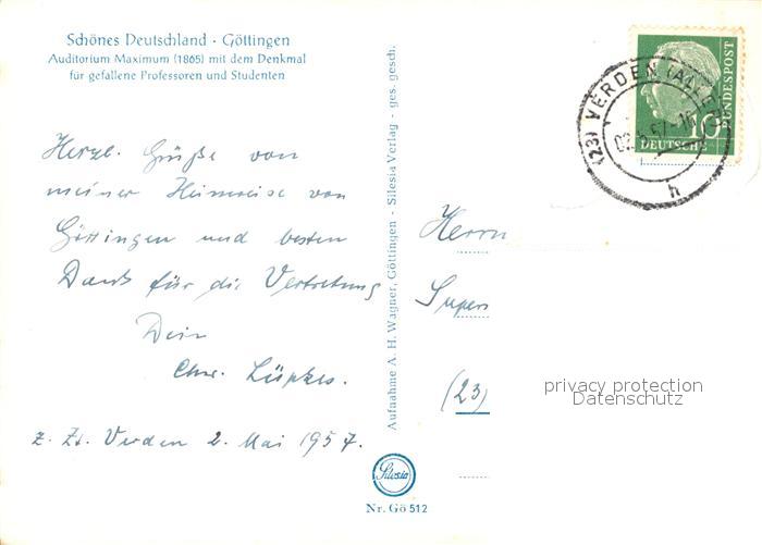 73279611 alte Postkarte Goettingen Niedersachsen Auditorium Maximum Denkmal postalisch gelaufen Erhaltung siehe scans [NatalD47] KatCode: 11110003152012