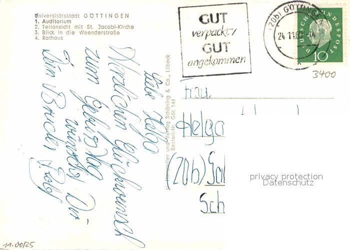 72915411 alte Postkarte Goettingen Niedersachsen Auditorium Teilansicht St Jacobi Kirche Weenderstrasse Rathaus postalisch gelaufen Erhaltung siehe scans [WerneD78] KatCode: 11110003152012