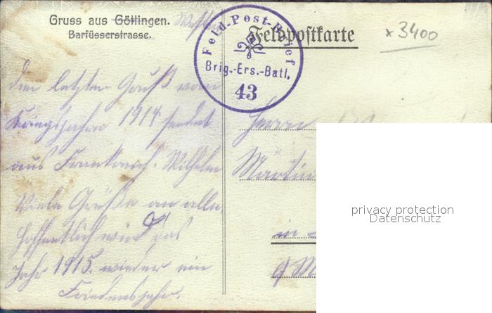 41988893 alte Postkarte Goettingen Niedersachsen Barfuesserstrasse Zeichnung postalisch gelaufen Feldpost Erhaltung siehe scans KatCode: 11110003152012