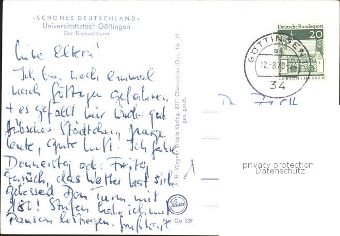 71913107 alte Postkarte Goettingen Niedersachsen Bismarckturm postalisch gelaufen Erhaltung siehe scans KatCode: 11110003152012