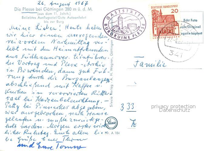 73075933 alte Postkarte Goettingen Niedersachsen Burg Plesse postalisch gelaufen Erhaltung siehe scans [KathaD81] KatCode: 11110003152012