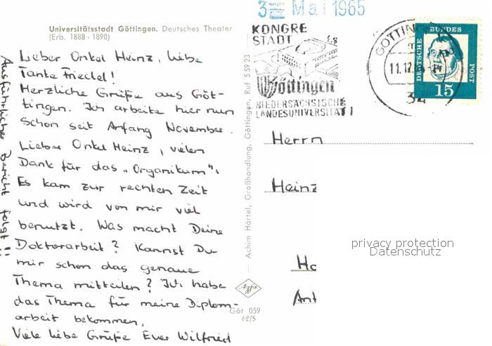 72815672 alte Postkarte Goettingen Niedersachsen Deutsches Theater Universitaetsstadt postalisch gelaufen Erhaltung siehe scans [FriedD77] KatCode: 11110003152012