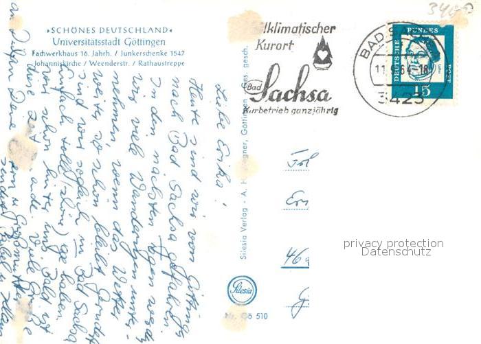 43351318 alte Postkarte Goettingen Niedersachsen Gaenseliesel Johanniskirche Marktplatz Fachwerkhaus Rathaustreppe postalisch gelaufen Erhaltung siehe scans [KathaD81] KatCode: 11110003152012
