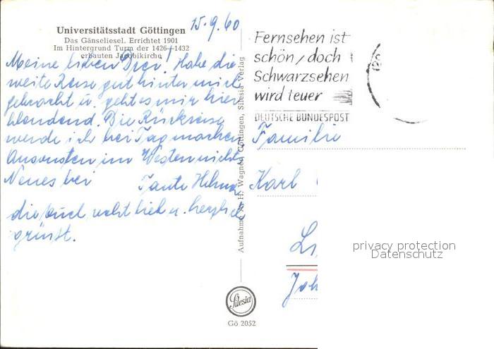 72078173 alte Postkarte Goettingen Niedersachsen Gaenseliesel Turm postalisch gelaufen Erhaltung siehe scans KatCode: 11110003152012