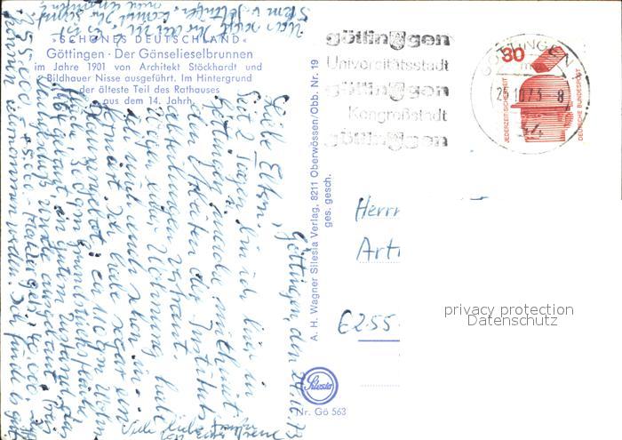 alte Postkarte Goettingen Niedersachsen Gaenselieselbrunnen postalisch gelaufen Erhaltung siehe scans