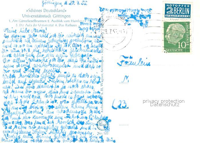 73335552 alte Postkarte Goettingen Niedersachsen Gaenselieselbrunnen Panorama Hainberg Aula Universitaet Rathaus Serie Schoenes Deutschland postalisch gelaufen Erhaltung siehe scans [FriedD77] KatCode: 11110003152012