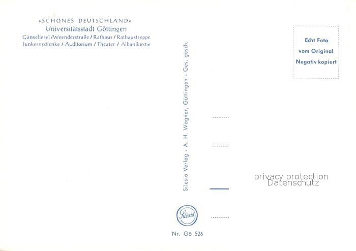 73248980 Goettingen Niedersachsen Gaenselieselbrunnen Weenderstrasse Rathaus Treppe Junkernschenke Auditorium Theater Albanikirche postalisch nicht gelaufen Erhaltung siehe scans [FriedD77] KatCode: 11110003152012