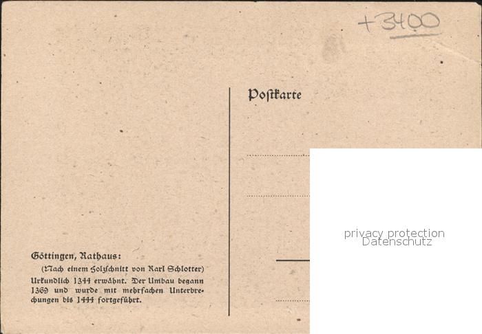 41988751 Goettingen Niedersachsen Goettinger Rathaus Holzschnitt postalisch nicht gelaufen Erhaltung siehe scans KatCode: 11110003152012
