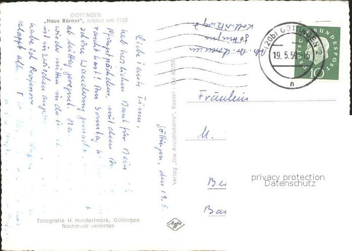 72250900 alte Postkarte Goettingen Niedersachsen Haus Boerner Fachwerkhaus erbaut um 1500 postalisch gelaufen Erhaltung siehe scans KatCode: 11110003152012