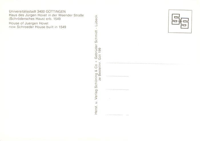 73880491 Goettingen Niedersachsen Haus des Juergen Hovet in der Weender Strasse postalisch nicht gelaufen Erhaltung siehe scans [WerneD78] KatCode: 11110003152012