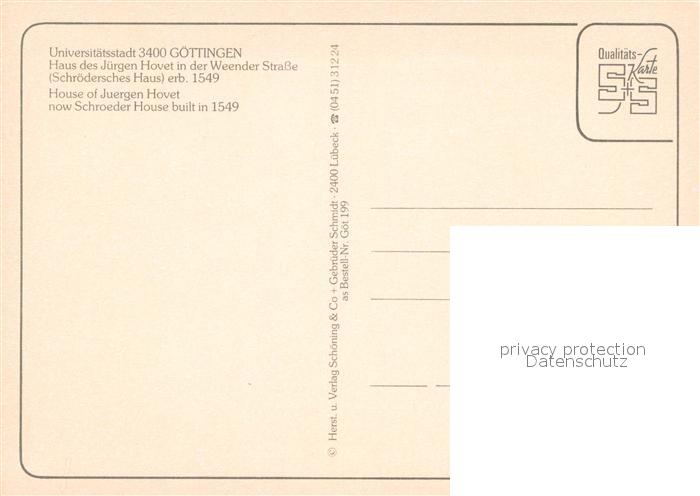 73713811 Goettingen Niedersachsen Haus des Juergen Hovet Schroedersches Haus 16. Jhdt. Historisches Gebaeude postalisch nicht gelaufen Erhaltung siehe scans [FriedD77] KatCode: 11110003152012