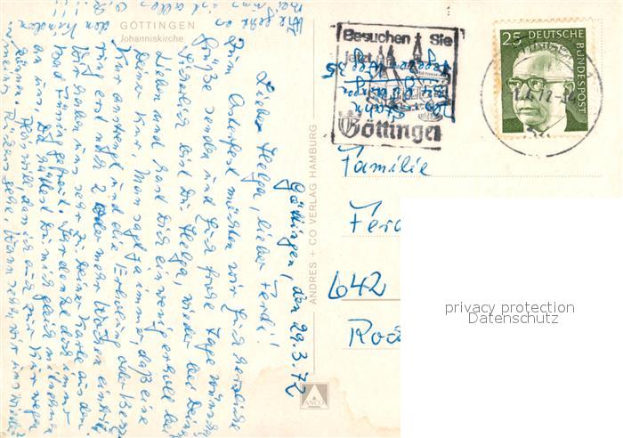 73272066 alte Postkarte Goettingen Niedersachsen Johanniskirche postalisch gelaufen Erhaltung siehe scans [FriedD77] KatCode: 11110003152012