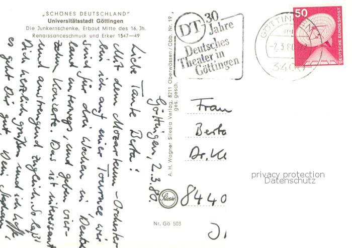 73770036 alte Postkarte Goettingen Niedersachsen Junkernschenke mit Renaissanceschmuck und Erker postalisch gelaufen Erhaltung siehe scans [WerneD78] KatCode: 11110003152012