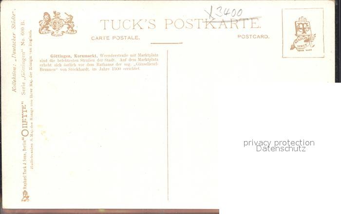 41989018 Goettingen Niedersachsen Kornmarkt Pferdekutsche Gaenselieselbrunnen postalisch nicht gelaufen Erhaltung siehe scans KatCode: 11110003152012