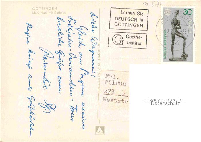 72782813 alte Postkarte Goettingen Niedersachsen Marktplatz Rathaus Brunnen postalisch gelaufen Erhaltung siehe scans [WerneD78] KatCode: 11110003152012