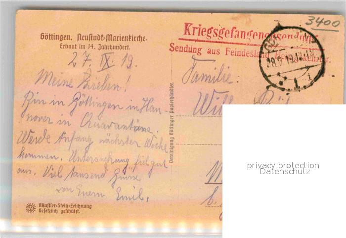 42704066 alte Postkarte Goettingen Niedersachsen Neustadt Marienkirche postalisch gelaufen Feldpost Erhaltung siehe scans [FriedD77] KatCode: 11110003152012