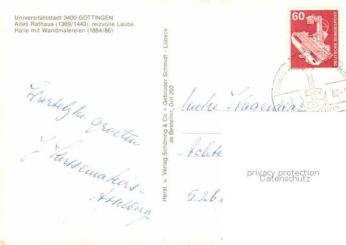 72656986 alte Postkarte Goettingen Niedersachsen Rathaus Laube Halle mit Wandmalerei Universitaetsstadt postalisch gelaufen Erhaltung siehe scans [LiesaD40] KatCode: 11110003152012