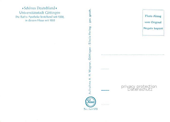 73135521 Goettingen Niedersachsen Raths-Apotheke postalisch nicht gelaufen Erhaltung siehe scans [NatalD47] KatCode: 11110003152012
