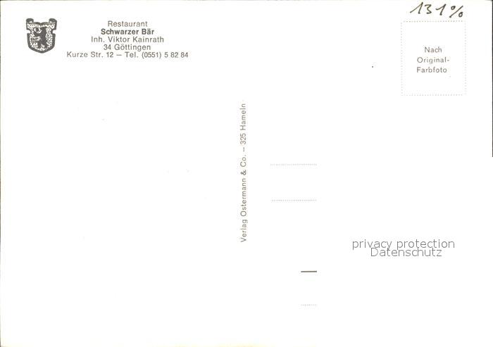 Goettingen Niedersachsen Restaurant Schwarzer Baer postalisch nicht gelaufen Erhaltung siehe scans