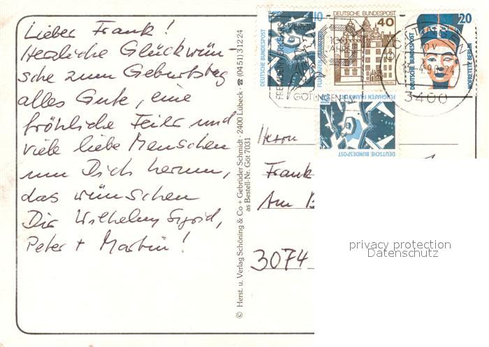 73046685 alte Postkarte Goettingen Niedersachsen Stadtblick Aula Auditorium Eingang zur Uni Mensa Uniklinik postalisch gelaufen Erhaltung siehe scans [FriedD77] KatCode: 11110003152012