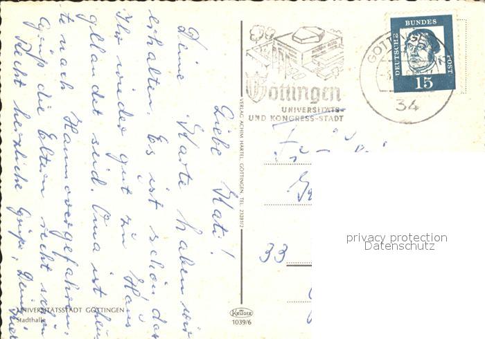 72069437 alte Postkarte Goettingen Niedersachsen Stadthalle postalisch gelaufen Erhaltung siehe scans KatCode: 11110003152012