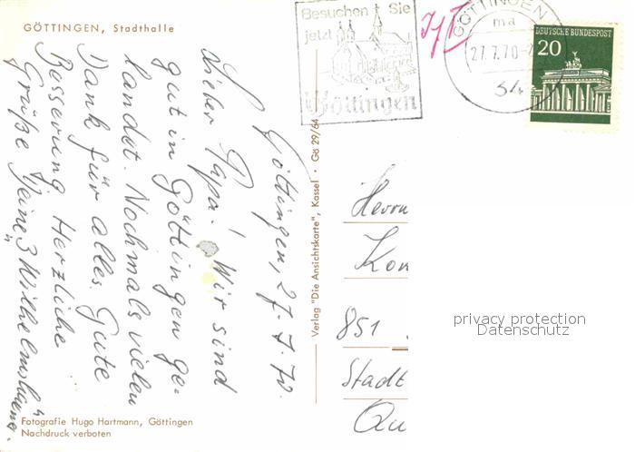 72884224 alte Postkarte Goettingen Niedersachsen Stadthalle postalisch gelaufen Erhaltung siehe scans [WerneD78] KatCode: 11110003152012