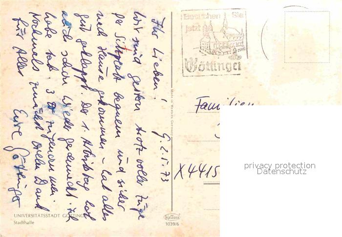 72841643 alte Postkarte Goettingen Niedersachsen Stadthalle postalisch gelaufen Erhaltung siehe scans [LiesaD40] KatCode: 11110003152012